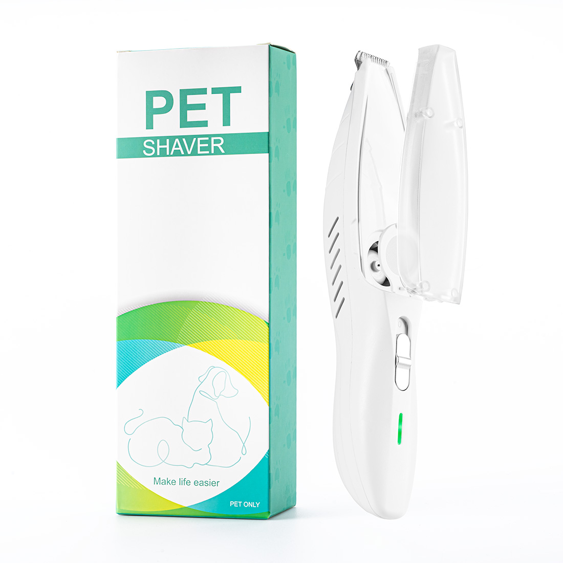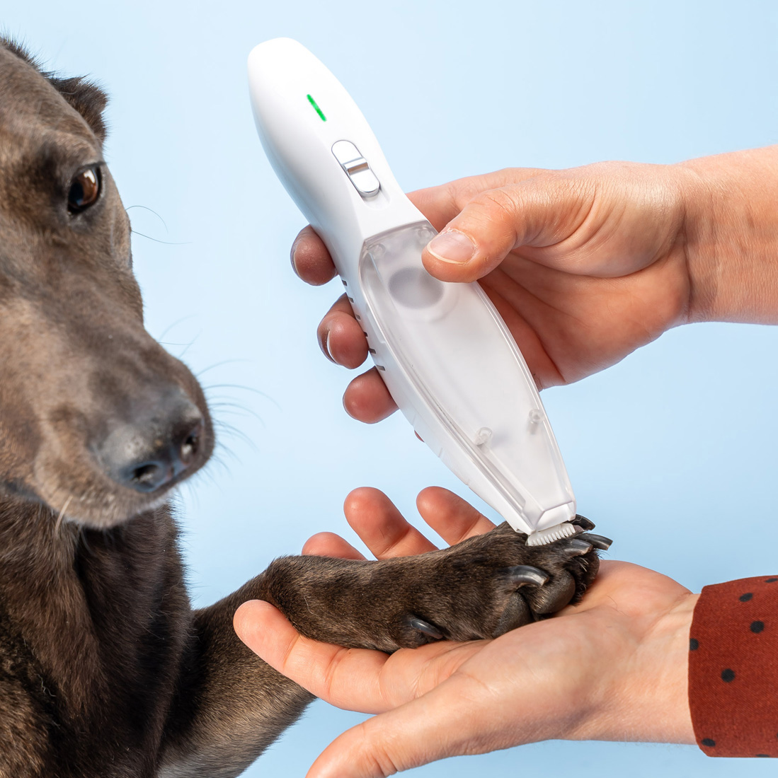 - Lekki, bezprzewodowy trymer z funkcją odkurzania i lampką LED – idealny do przycinania sierści psa lub kota. Doskonały do pielęgnacji łap, pyska i uszu – czysto, wygodnie i bez stresu.